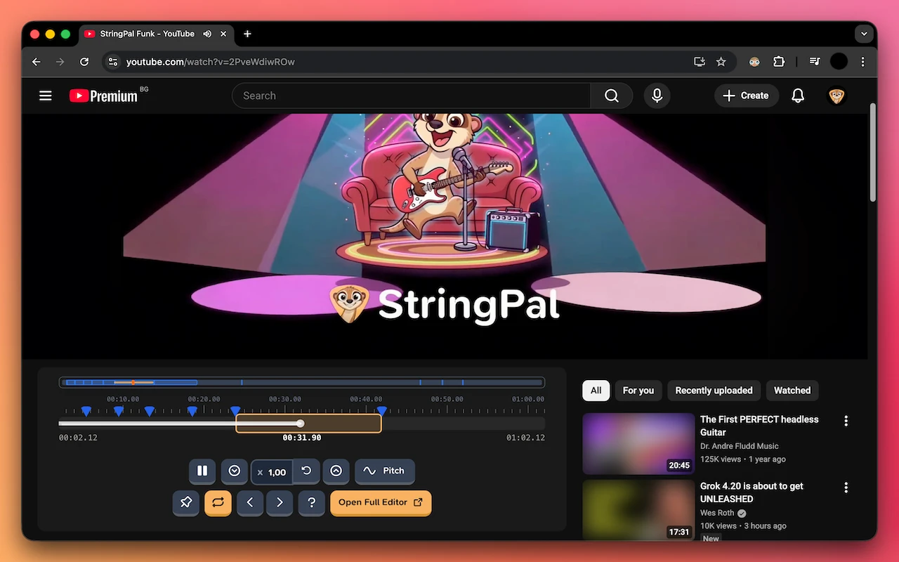 Loop sections, shift pitch, control speed – all without leaving YouTube